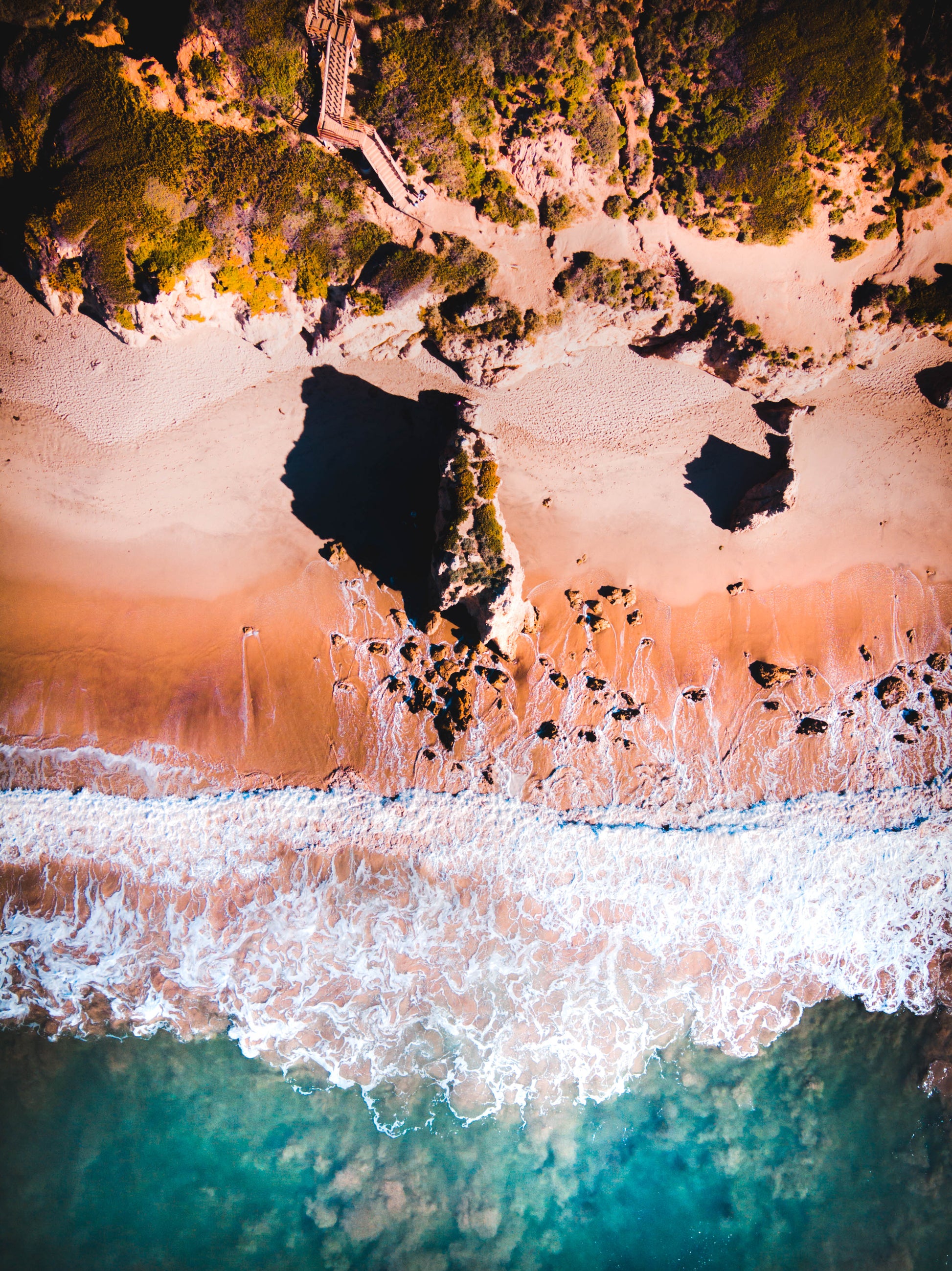 A bird’s-eye view of El Matador Beach in Malibu, where waves crash against sandstone cliffs and golden sand. This aerial captures the raw beauty of one of California’s most iconic beaches — a blend of dramatic rock formations, turquoise water, and untouched shoreline. A true West Coast classic for collectors who want California’s coastal energy on their walls.