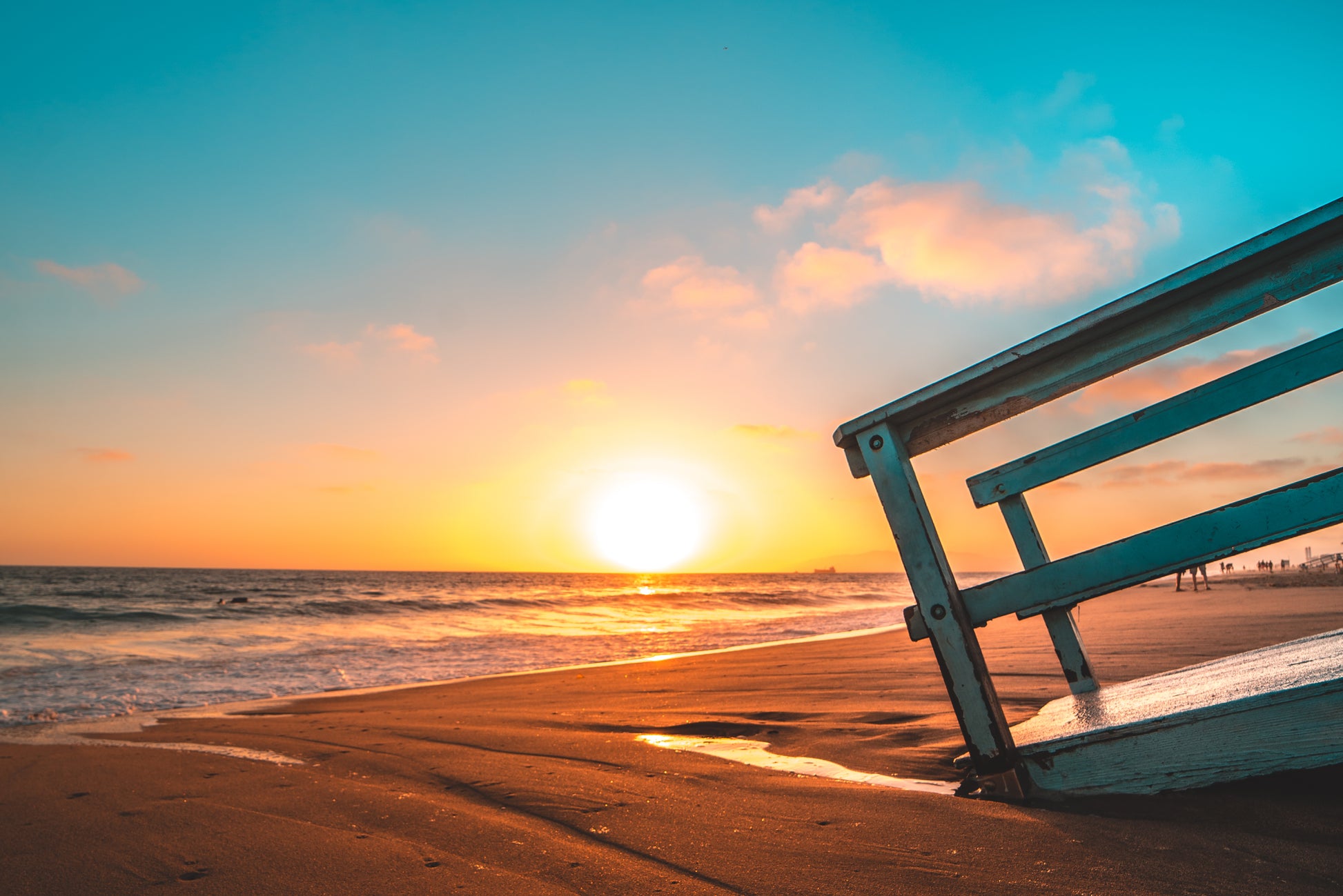A golden Hermosa Beach sunset captured from the shoreline, with the iconic lifeguard tower angled toward the surf. The warm sky fades into soft Pacific blues, reflecting the laid-back rhythm of Southern California’s coast. This fine art print brings beachside nostalgia into any space.